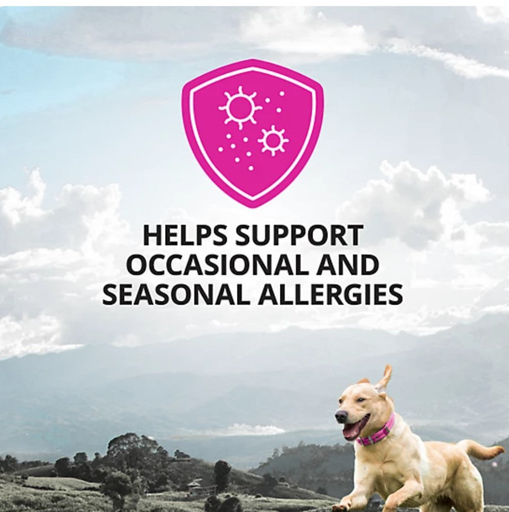 Formulated to support occasional and seasonal allergies in dogs over the age of 12 weeks.
