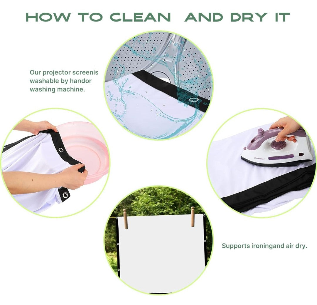 Thickened Fabric for Superior Viewing: Our outdoor projection screen features a white movie screen sheet made from high-quality fabric. The enhanced thickness ensures a smooth surface and optimal projection clarity, bringing your movies to life in stunning detail,It uses washable materials and can be washed either by hand or in a washing machine.