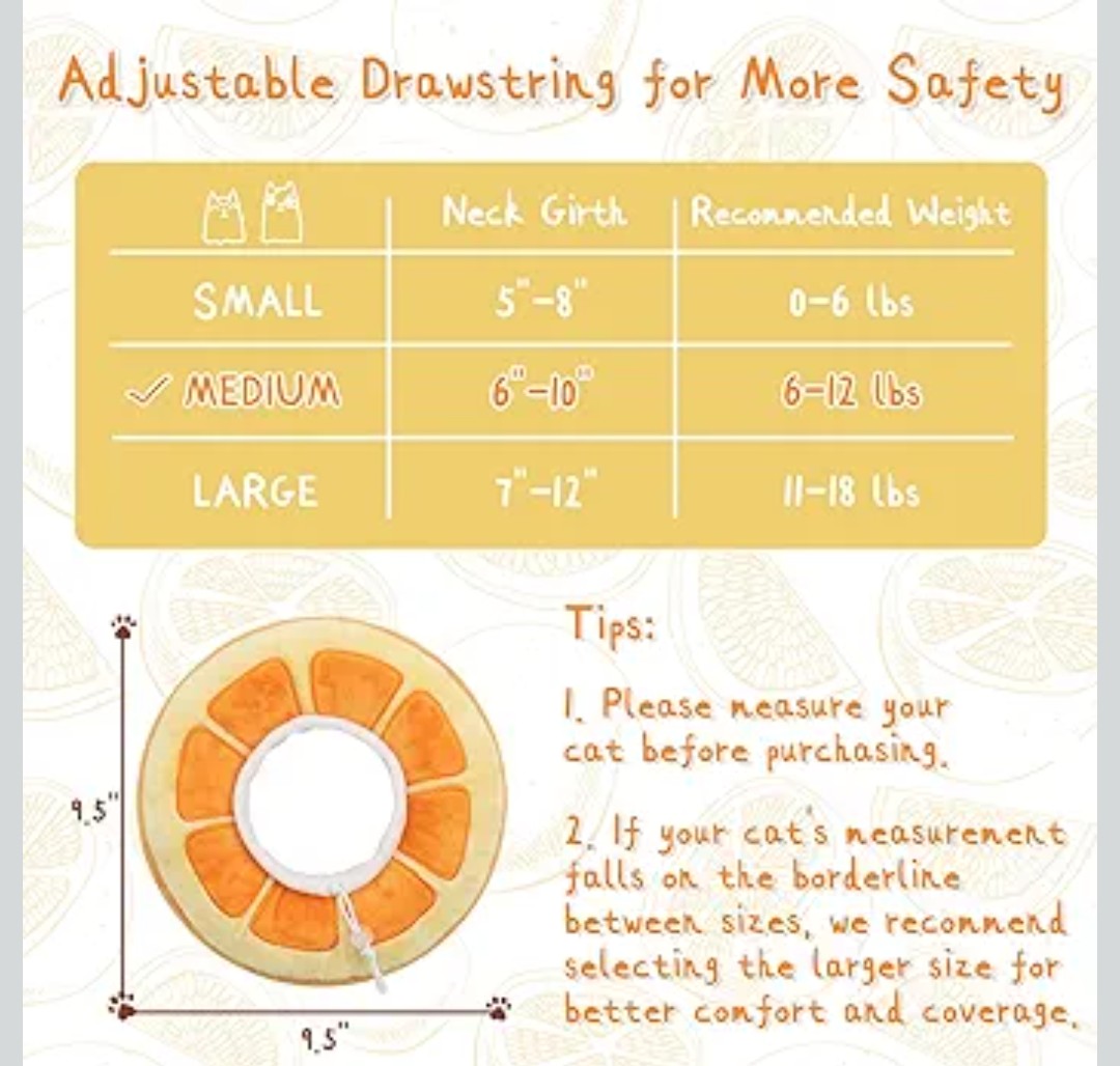 【AS AN ADORABLE PILLOW】 More than a cat recovery collar, it’s an adorable decoration for your lovely kitten. It also acts as a soft pillow when the cat lies down. Imagine your cat wearing it and looks like an orange, you both will be in a good mood all day.