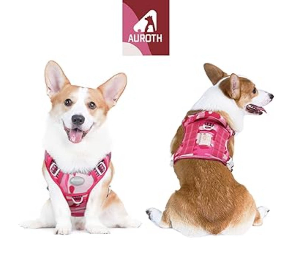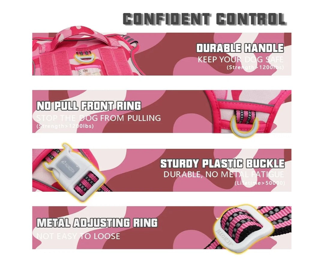 Auroth Tactical Pet Harness for Medium Dogs No Pull Adjustable, Reflective K9 Working Training Easy Control Vest Military Service Dog, Medium, Pink Camo