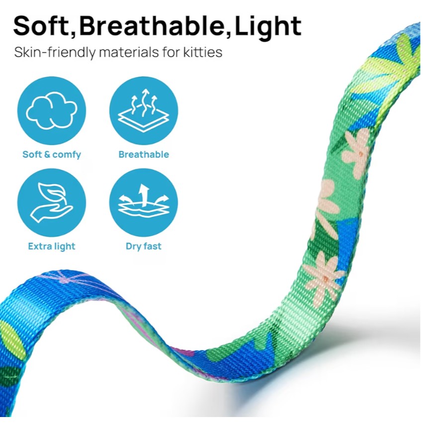 Comfortable & Safe: The cat harness escape proof is light, soft, breathable, skin-friendly, and bears no weight. Harness for cats is comfortable to wear, and it will not stick hair and hurt the skin even if it is used for a long time. Easy to clean and dry quickly, no smell.