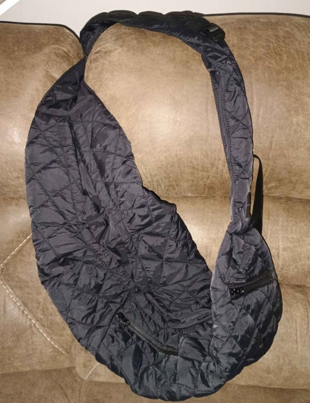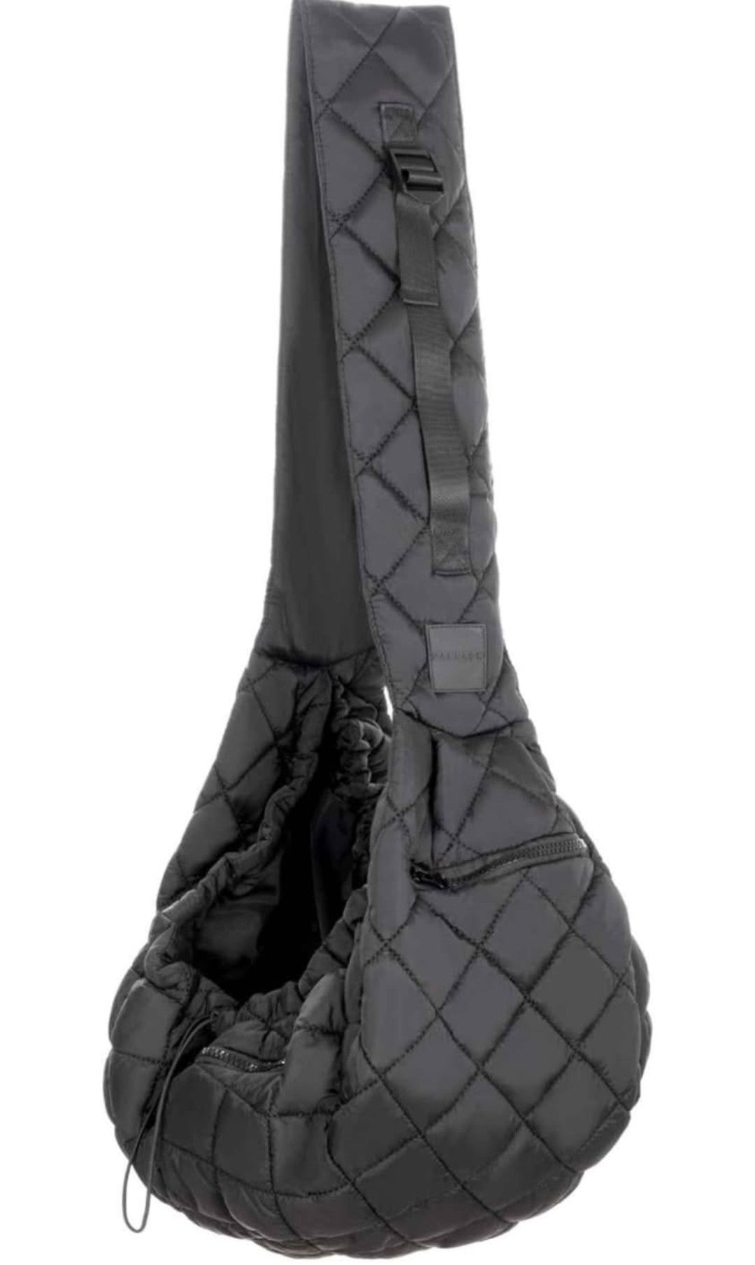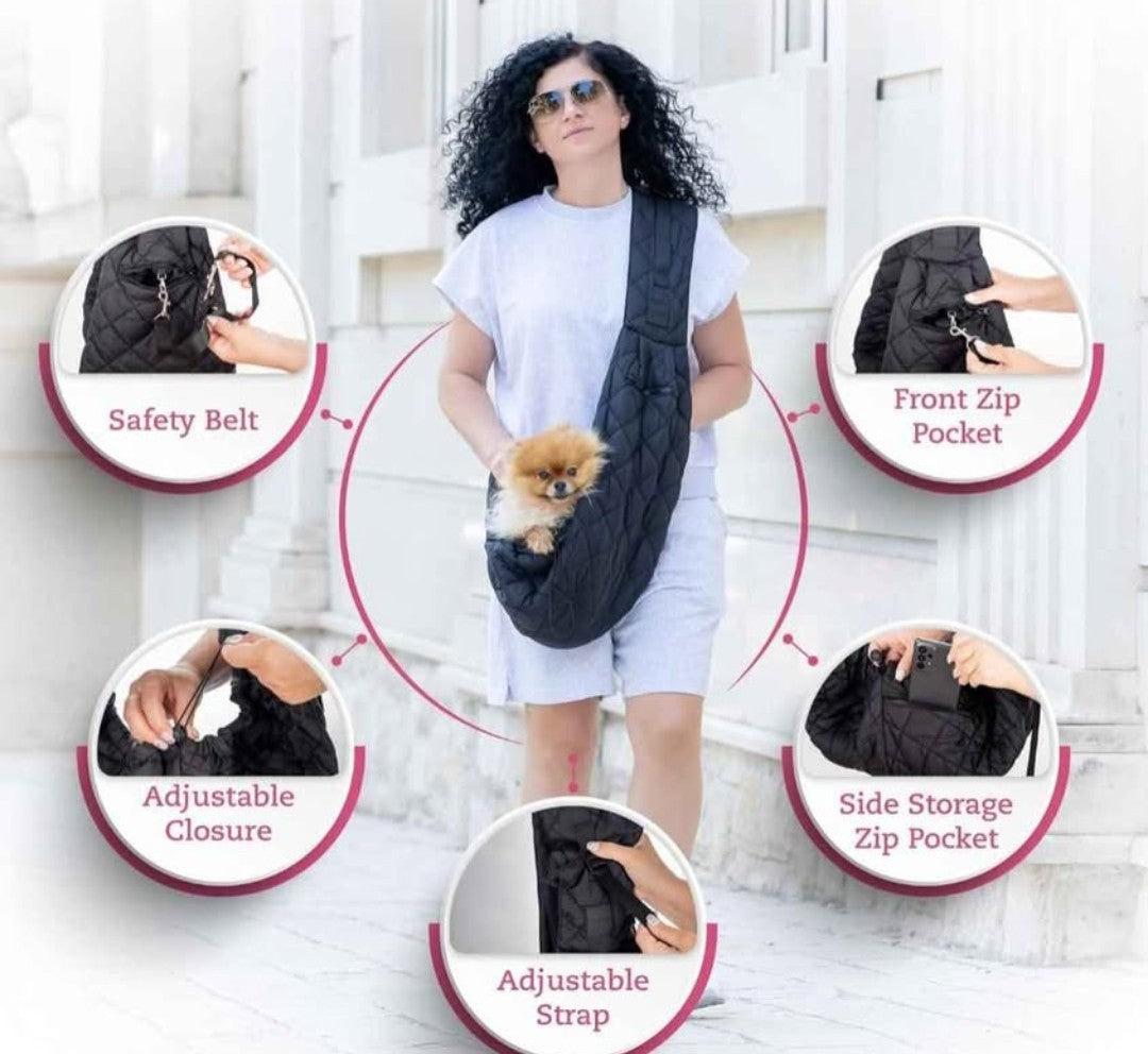 Dog and Cat Sling Carrier for Small Medium Puppy & Kitten Carrying, Wearable Crossbody Purse Bag with Adjustable Size and Shoulder Strap, Safety Clip, Two Zip Pockets (Black)