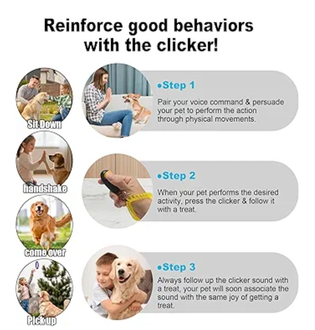 【Whistle & Clicker】: This is a set of training aids that combines two of the most popular dog training tools: a clicker and a whistle, making it an essential training product.