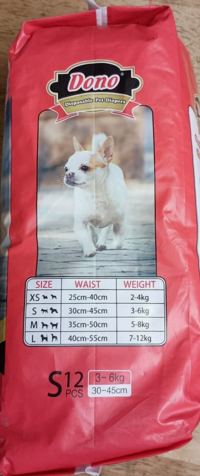Dono Disposable Dog Diaper 12 count S= 6.5lb-13lb 11.8-17in Waist. D
