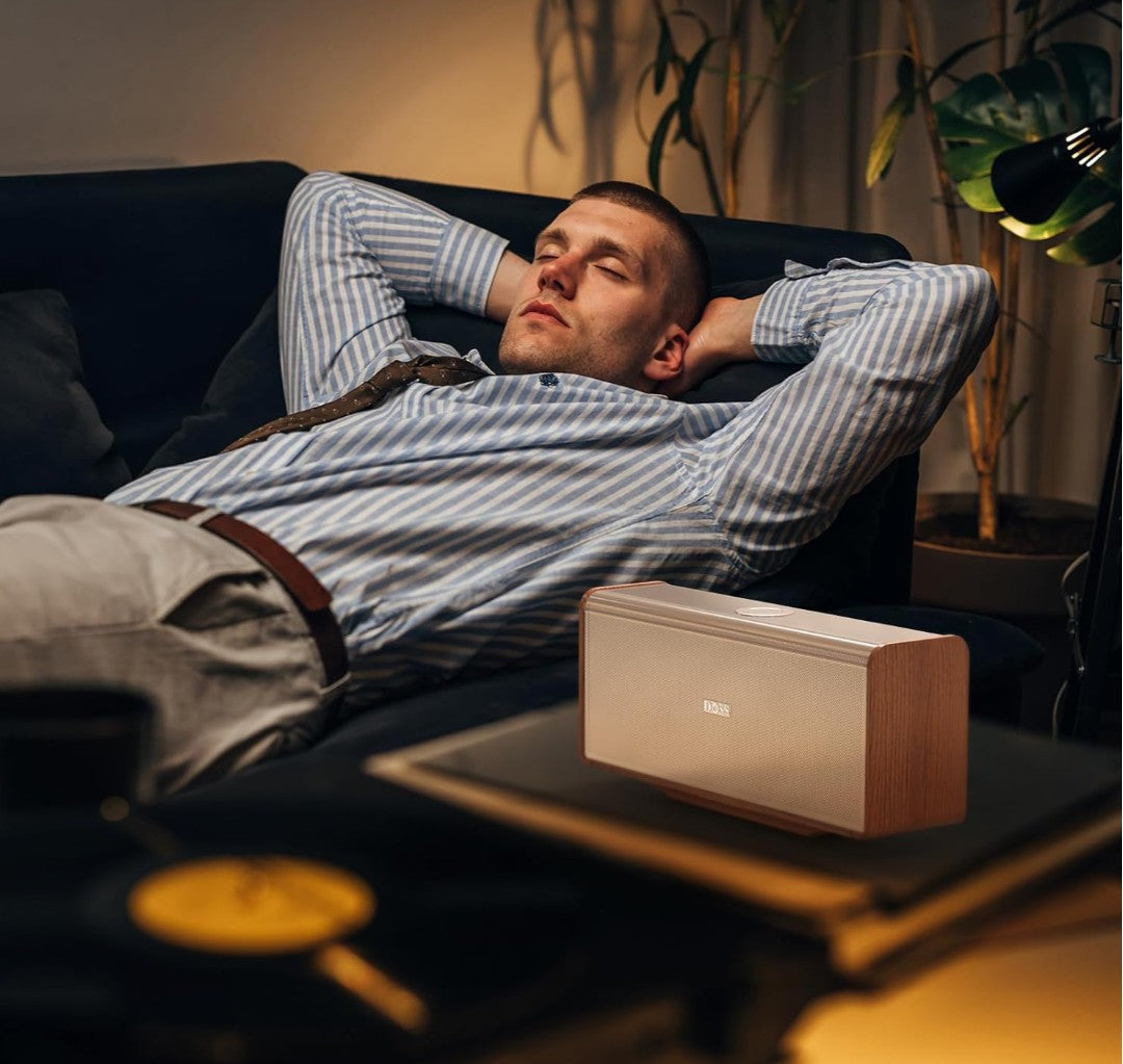 Experience room-filling sound with the DOSS SoundBox XL Ultra Bluetooth speaker, featuring "80W Impressive Sound: Delight in premium-quality, room-filling sound with our speaker's 40W subwoofer, dual 20W inner magnet driver drivers." The speaker showcases "Advanced Acoustic Design: Indulge in exceptional sound quality achieved through the superior acoustic design" and "The body is made of premium-quality metal and faux wood grain texture" for a sophisticated look that complements any room.