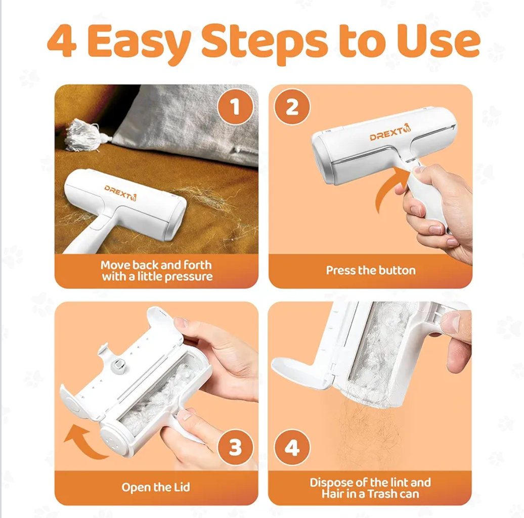 Multipurpose Convenience: Perfect for cleaning a variety of surfaces including couches, pillows, rugs, and car interiors. The DREXT roller makes removing pet hair from your furniture and living spaces not just possible, but effortless. Say goodbye to fur-covered furniture with ease!