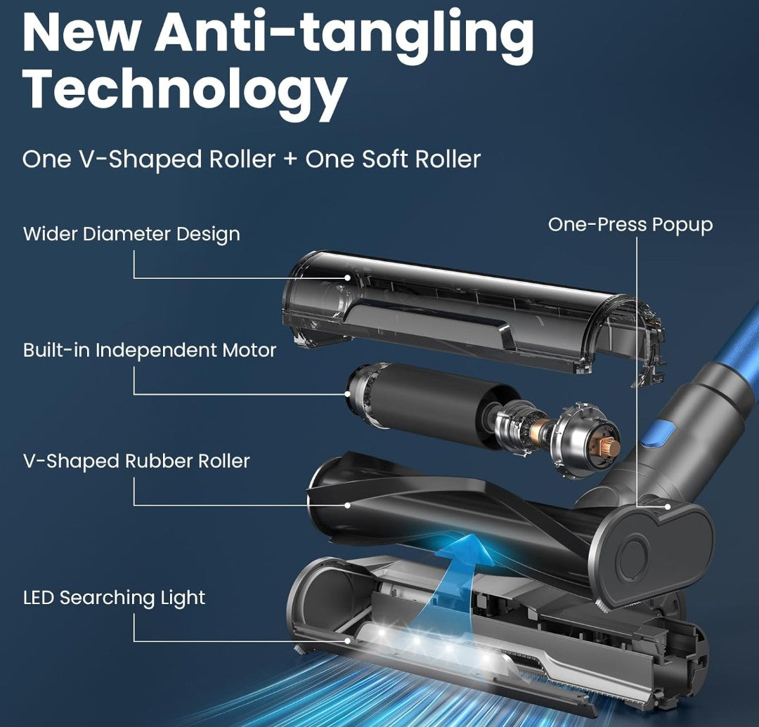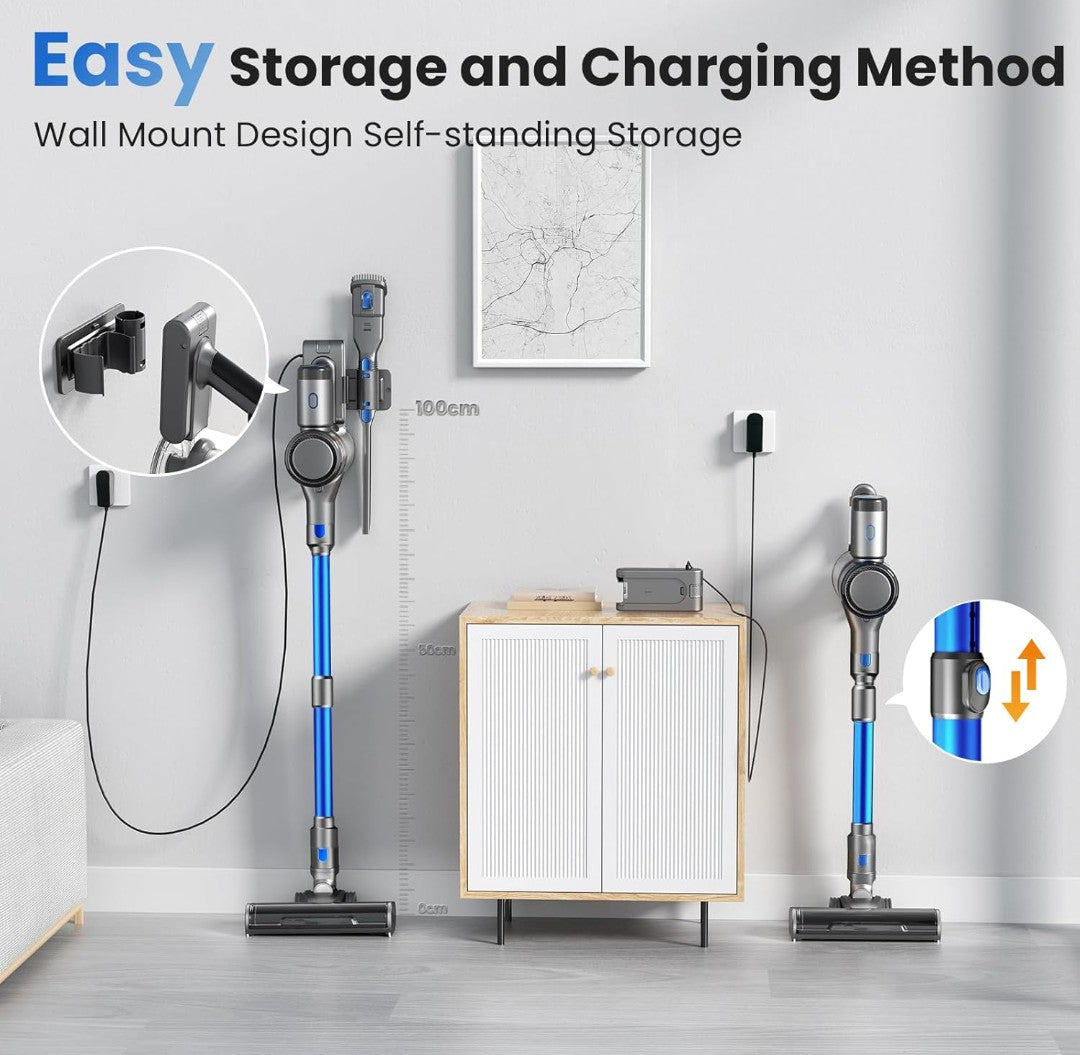 Dzaki S9X Vacuum Cleaners for Home,400W 45KPa Cordless Stick Vacuum Cleaner,Up to 55 Mins Runtime,Smart Induction Auto-Adjustment,Rechargeable Battery Vacuum Cordless for Carpet Floor Pet Hair(Blue).