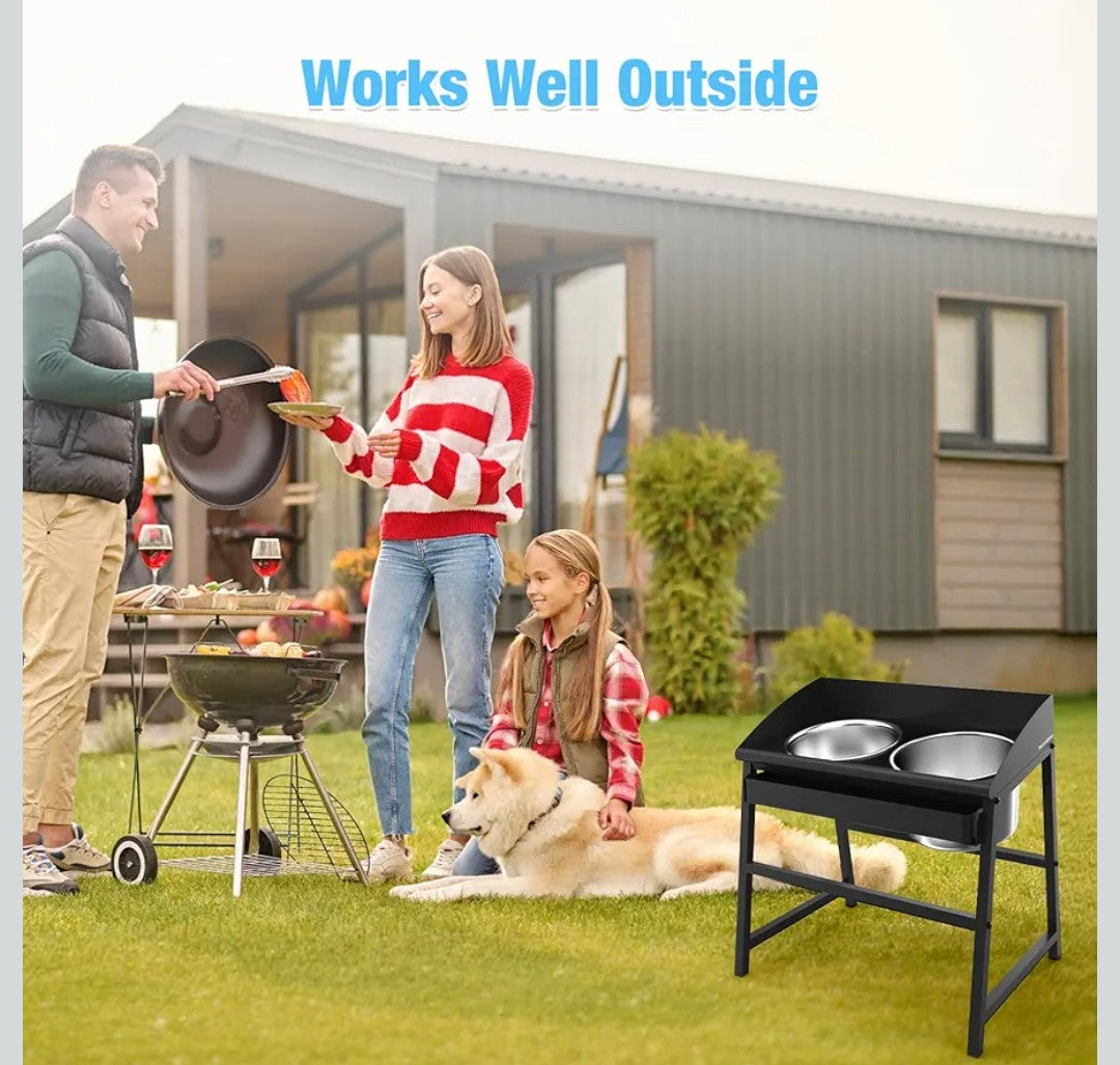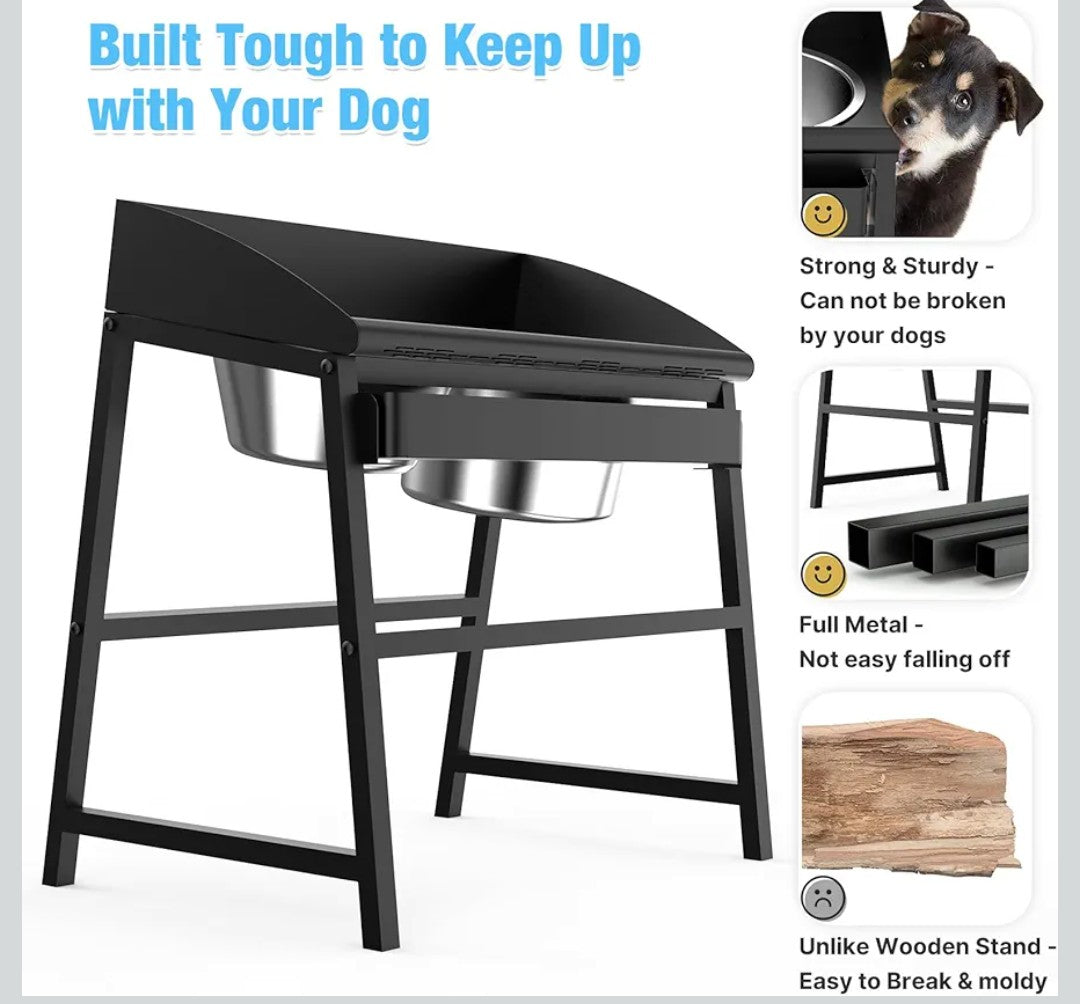 Sturdy Full-Metal Large Dog Bowl Built to Last a Lifetime: Constructed with a full-metal design, this elevated dog bowl stand is built for long-lasting use, both indoors and outdoors. Unlike wooden stands that are prone to mold and breakage, our iron stand resists corrosion and boasts exceptional durability, making it ideal for even the most energetic dogs. Plus, assembly is quick and hassle-free.