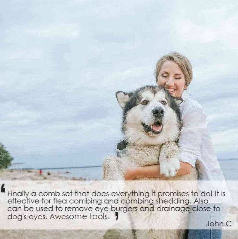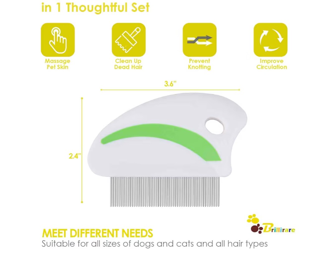 THOUGHTFUL SET: Our pet grooming product includes a flea comb, the stainless steel teeth are super close together to easily pull out anything extra from pet’s coat. Perfect for straightening out knotted tangles hair, as well as finishing and fluffing.