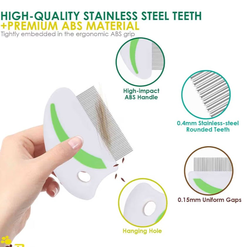 Flea Lice Comb, Stainless Steel Dog Cat Grooming Combs with Rounded Teeth, Professional Pet Tear Stain Remover, Dematting Tool for Small, Medium & Large Pets