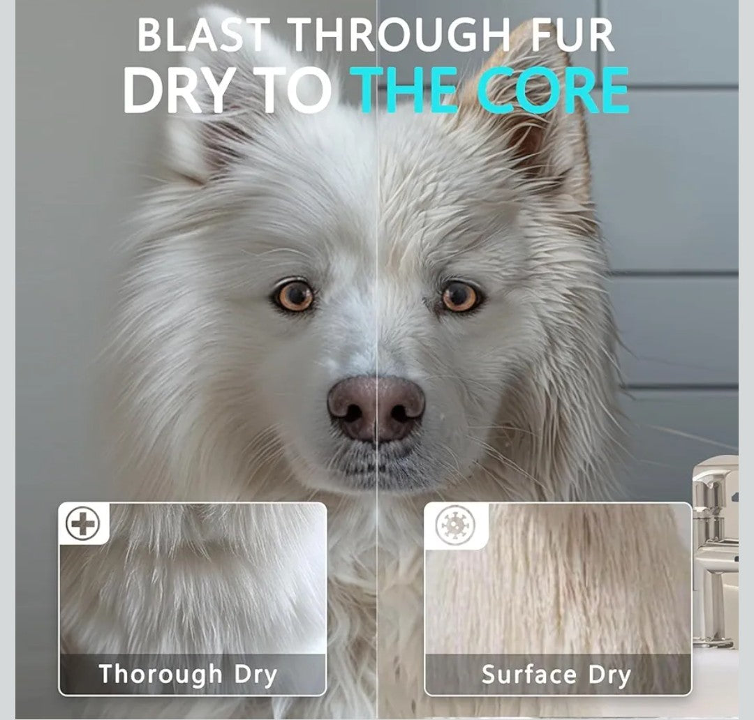 【High Power & Efficiency】 Compared to traditional dryers, this professional-grade hair dryer for Pets delivers 3800W / 5.2PS power, cutting drying time by over 60%. Perfect for both home use and professional groomers who demand speed and performance.
