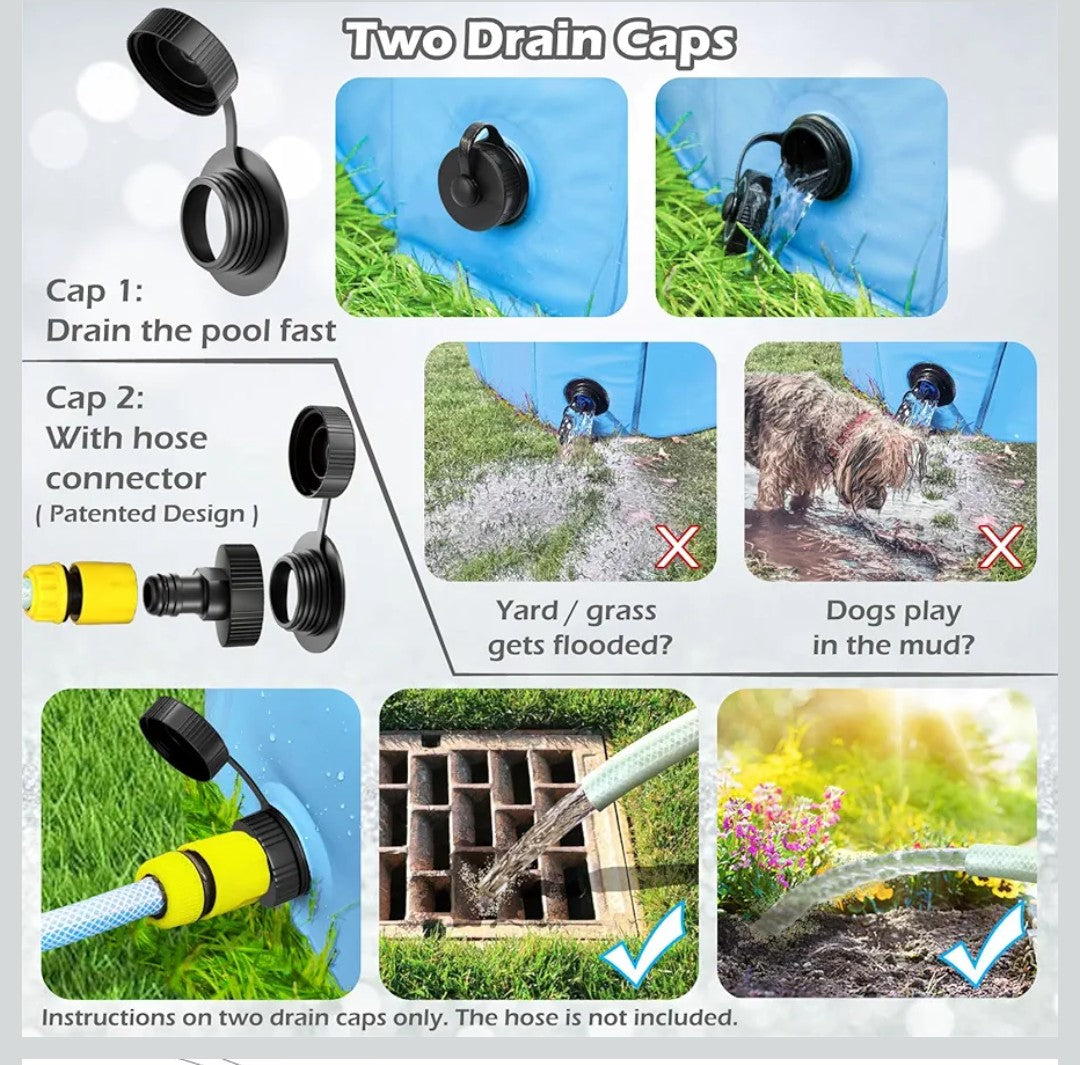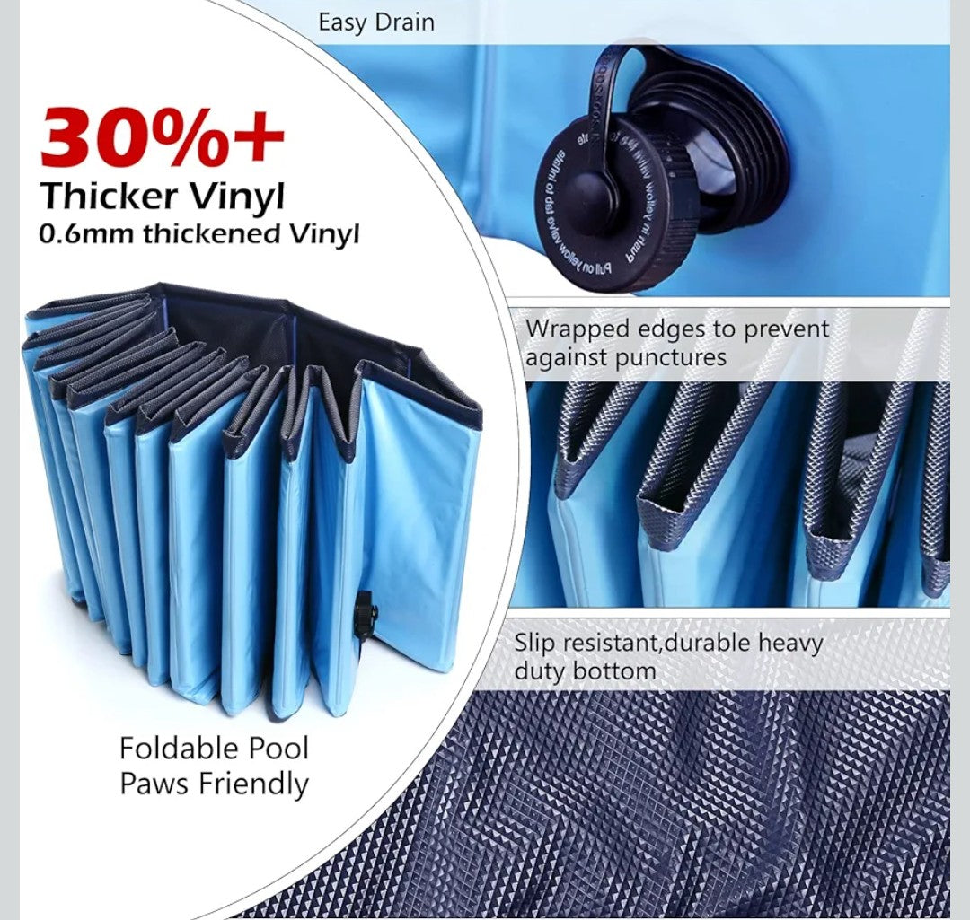 Portable and Foldable Dog Pool --- This pet pool is foldable, easy to store and it is easy to transport with you and your dog wherever you go. It can be used as doggie pool, kiddie pool, kids pool, wading pool, pet dog bath tub ball pit outdoor dog water toys etc.
