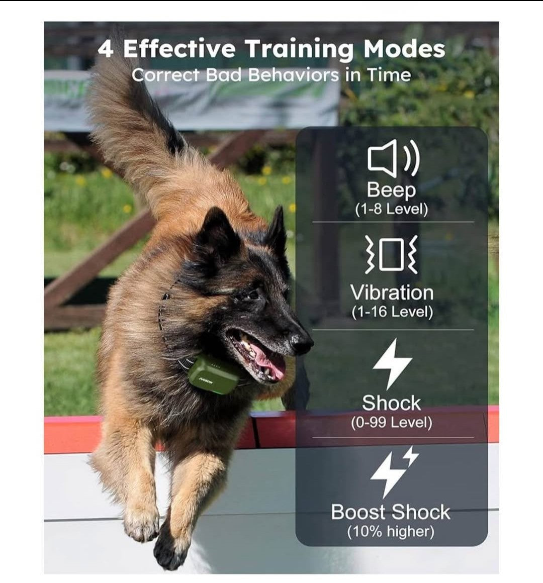 Training Modes: The collar provides multiple training modes, including beep, vibration, and static shock (with adjustable levels), to help correct unwanted behaviors.