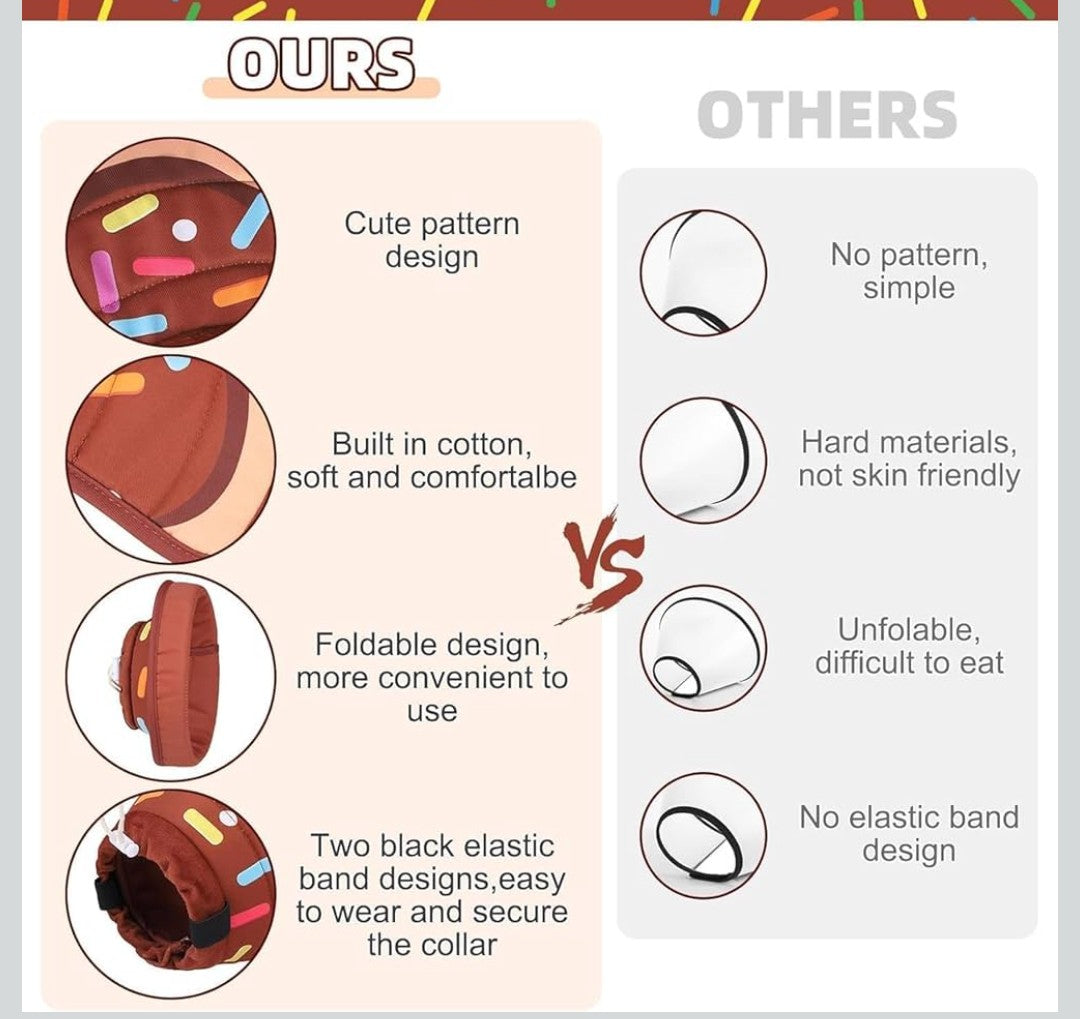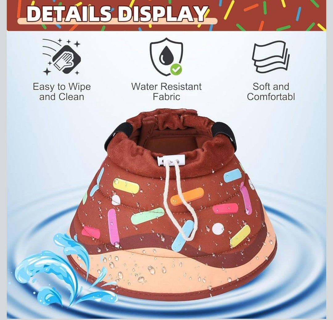 WATER RESISTAND & COMFORTABLE: Our recovery collars are made of waterproof fabric, which is lightweight and easy to clean. Simply use mild soap to clean and dry. Dust and water droplets on the surface can also be removed by wiping. Built-in sponge filling, soft and comfortable. Don't worry about our collar hurting your pet.