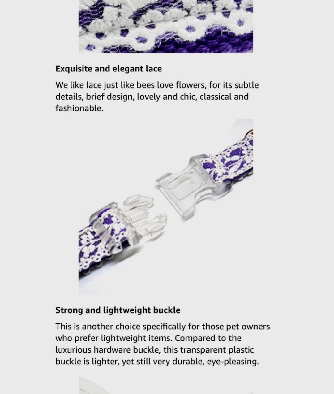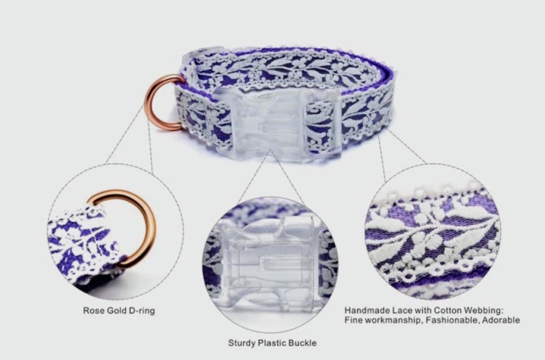 Lekaigo Dog Collar Purple Cotton Lace Handmade Size Large Very Stylish see measurements in pictures.