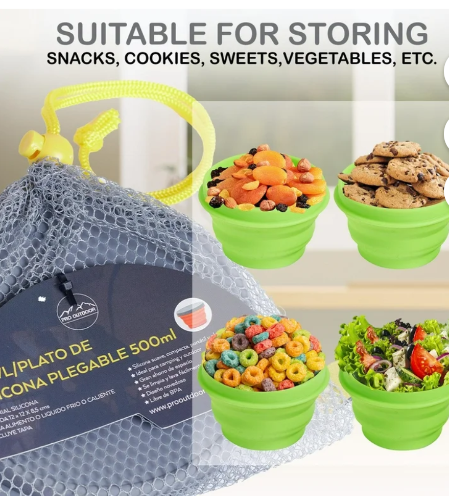 VERSATILE STORAGE SOLUTION: Store snacks, cookies, sweets, and vegetables in our PRO OUTDOOR Collapsible Bowl. Perfect for on-the-go snacking or meal prep at home.