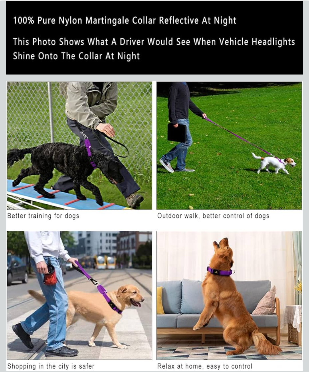 PLUTUS PET Reflective Martingale Collar with Quick Snap Buckle,No Pull Dog Choker Collar for Small Medium Large Dogs,S,Purple