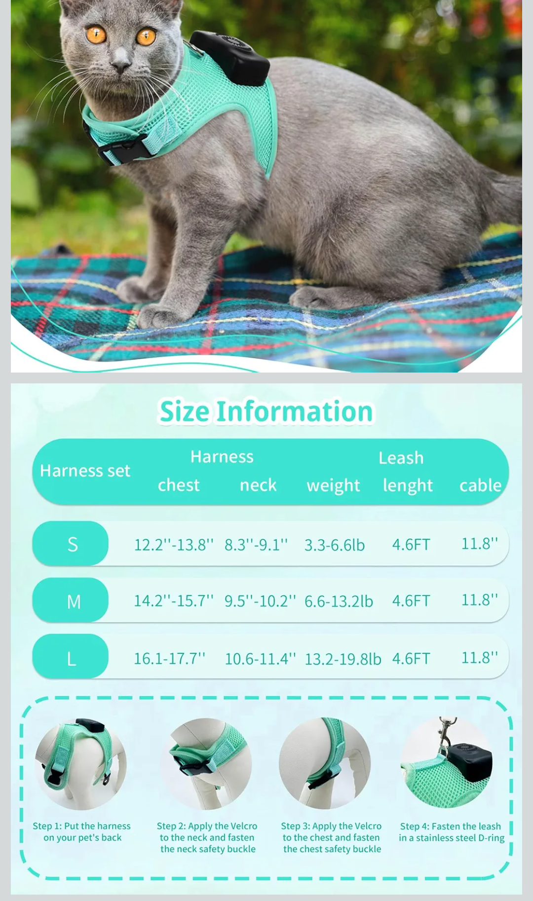 🐕 【Cooling Harness For Small Dogs】This dog harnesses is not suitable for large dogs. It is suitable for small dogs, extra small dog or cat, such as Yorkshire Terriers, Shih Tzus, Chihuahuas, Teddy, Bichon Frise, Schnauzer or some puppies. This cat harness distributes pressure evenly across your pet's body, without straining the neck or choking.