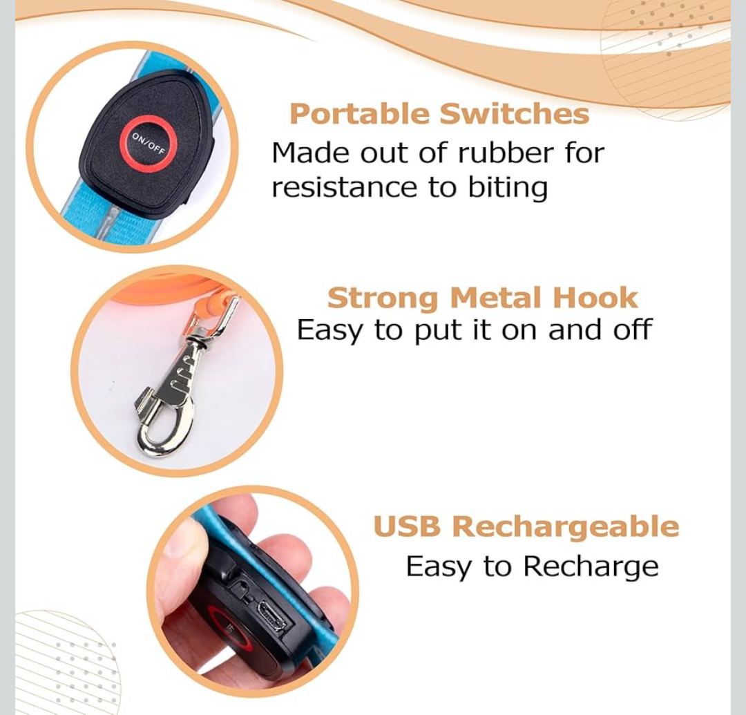 - Introducing the Wagably Light Up Dog Leash, a revolutionary safety accessory that will illuminate your nighttime walks with your furry friend, ensuring both of you remain visible and secure. With its cutting-edge LED lights, this leash is the perfect solution for night walking, offering a remarkable blend of functionality and style. Say goodbye to dark, uncertain evening strolls, and embrace the newfound confidence and peace of mind this leash provides.