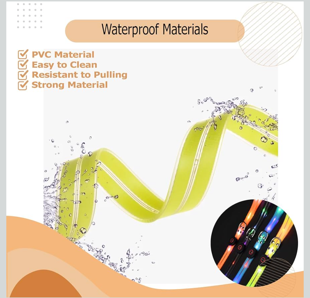 - Crafted with the utmost attention to quality and durability, the Wagably Glow Safety Standard Dog Leash features high-quality nylon webbing that not only offers excellent water resistance but also maintains a lightweight design. This thoughtful combination ensures that you and your canine companion can venture into various environments without worry. Whether it's a rainy evening or a damp, dewy night, this leash will remain steadfast and comfortable, making each walk a delightful experience.