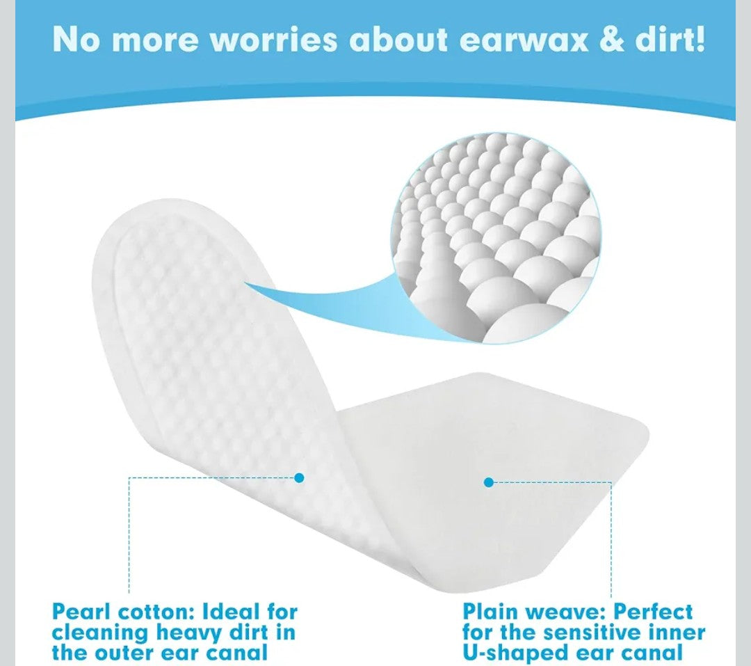 【Soft and Effective】:Measuring 5.7" L x 1.8" W, the extended size and pull-tab tail design make it easy to wear and prevent slipping. Made from 100% pure cotton, the soft material is gentle on your pet’s sensitive skin. The dual-sided design caters to different needs: one side features a plain weave for gentle wiping, ideal for sensitive inner ear areas; while the other has a textured pearl pattern for deep cleaning and removing stubborn dirt.