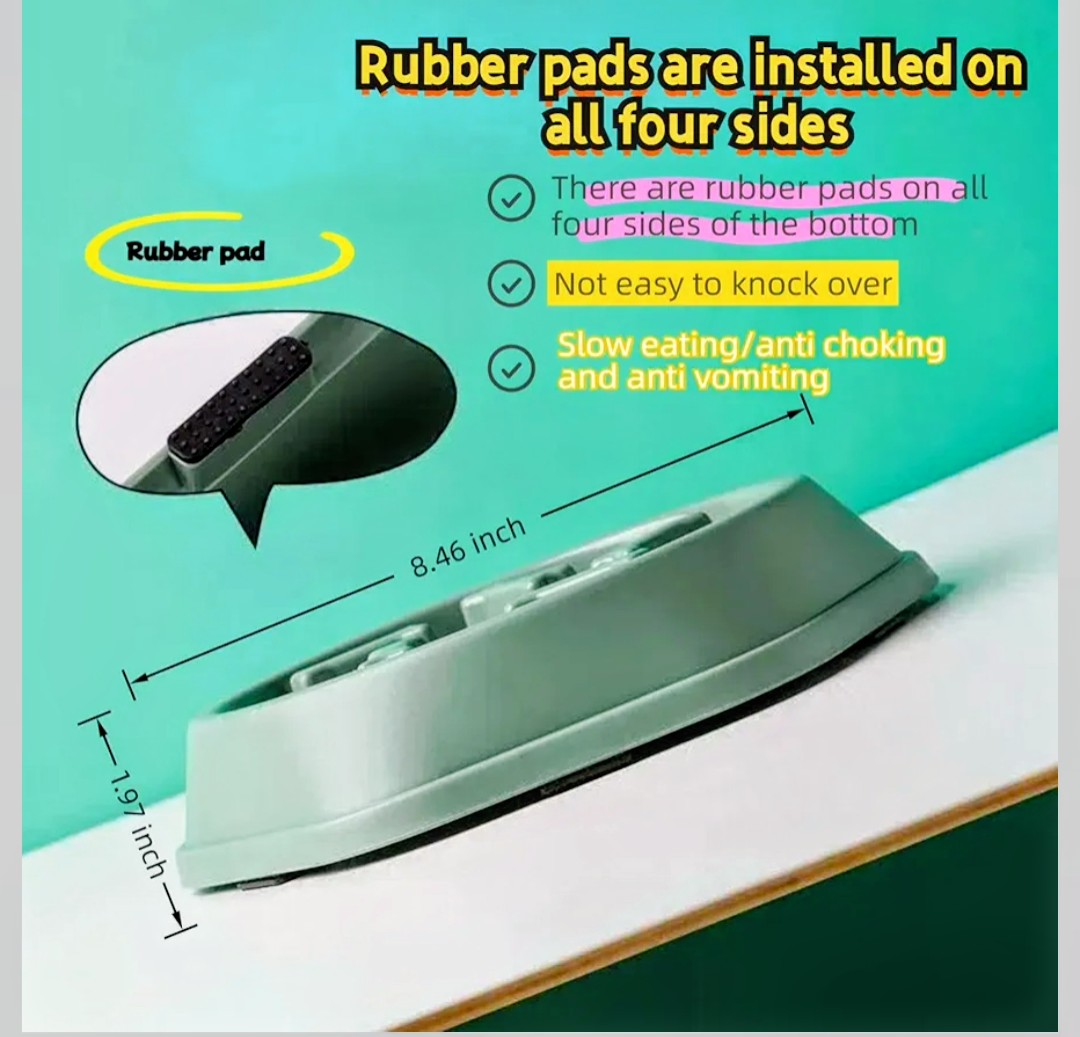 Eating too quickly in pets can lead to suffocation, obesity, and even life-threatening stomach diseases! This slow food bowl features a clever divider design that requires pets to "explore" with their tongue and paws in order to eat, extending feeding time by 2-3 times while adding fun.