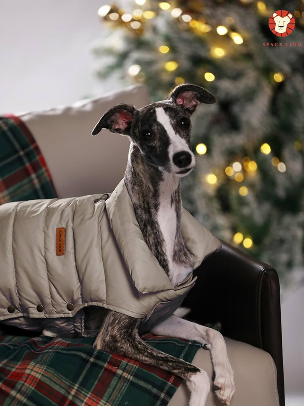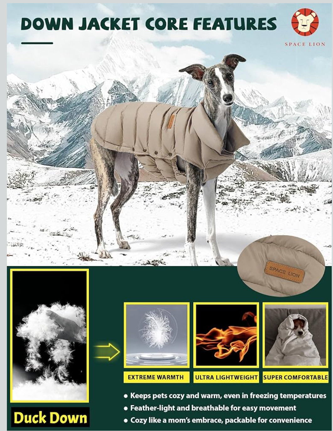 SPACE LION Puffer Jacket, Down Winter Coat, Durable Outdoor Coat for Cold and Windy Conditions, Waterproof, Windproof, Lightweight Jacket, Adjustable Fit for Small, Medium Dogs(khaki,M)
