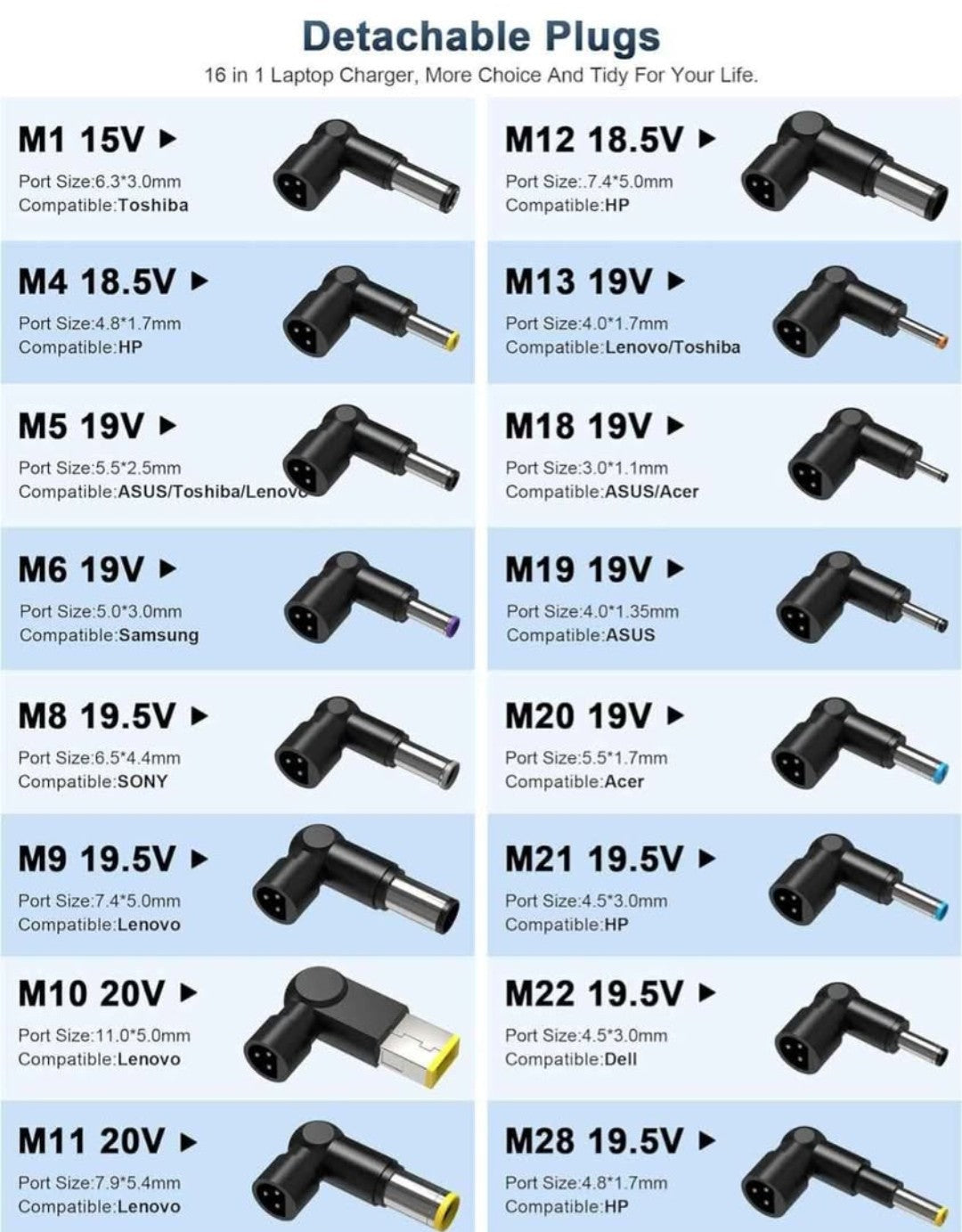 Universal Laptop Charger Compatible with HP Lenovo Dell Acer Asus Toshiba IBM Fujitsu Notebook Ultrabook Chromebook Computer Charger AC Adapter Power Cord with 16 Tips