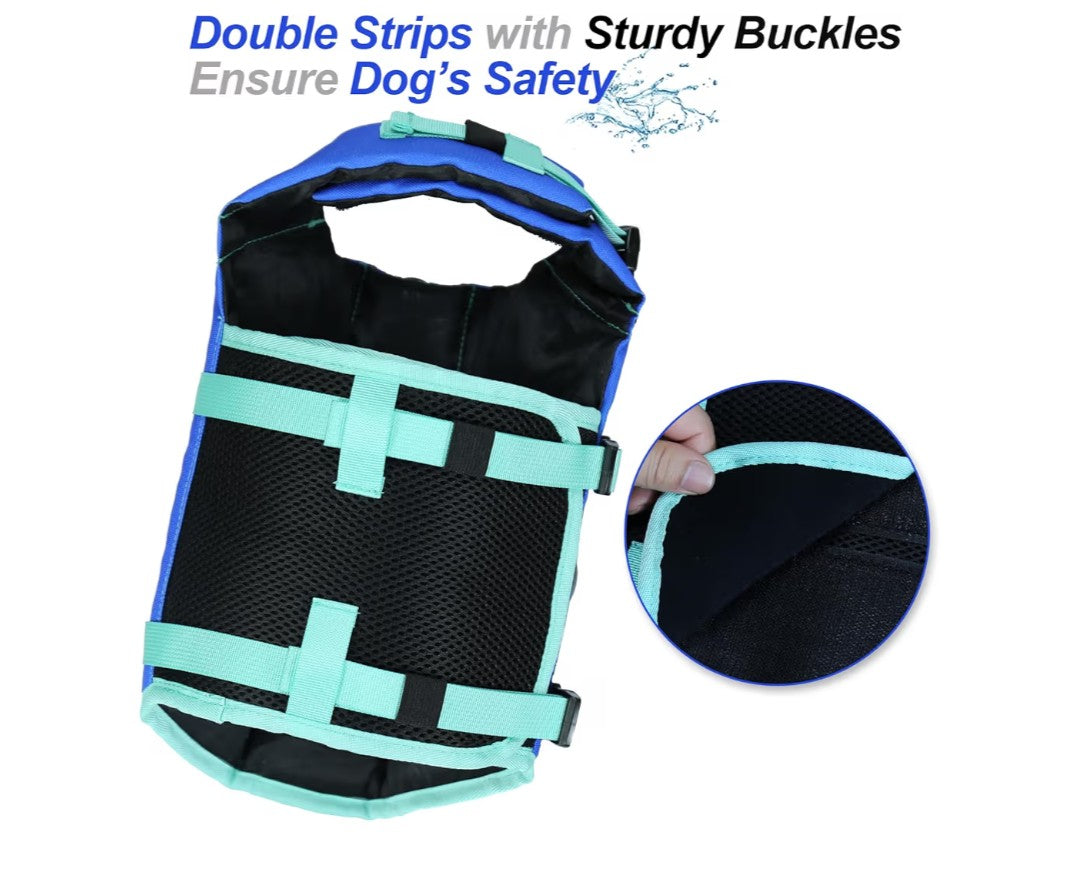 Comfortable Fit and Easy Handling: With adjustable straps, quick-release buckles, and a reinforced top handle, this dog life vest ensures a secure and customizable fit. The grab handle also makes it easier to lift your dog in and out of water with confidence.