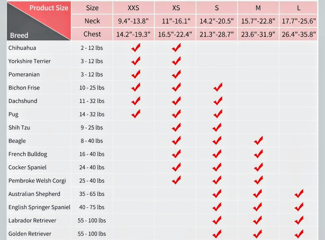 Size: XS - (Neck:11.0"-16.1", Chest:16.5"-22.4")