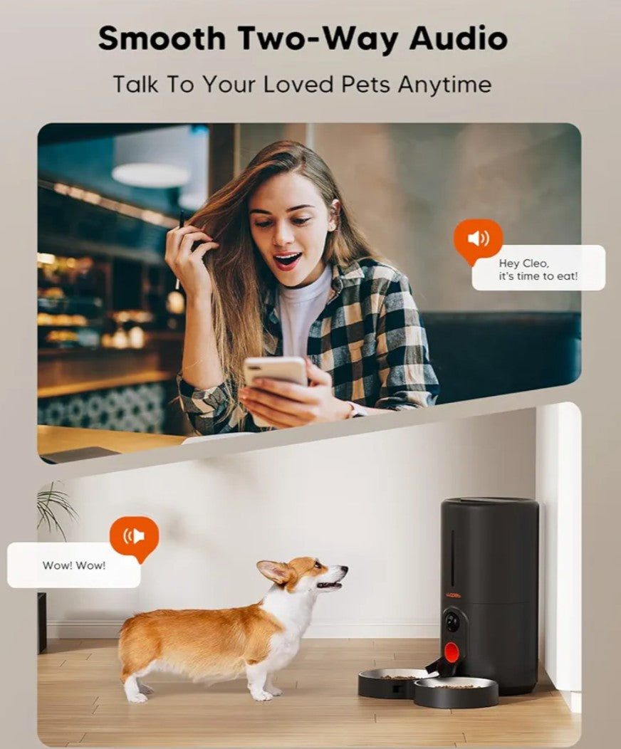 Two-way Audio & Personalized Meal Call: WOPET 6L automatic pet feeder features advanced built-in microphones and speakers, allowing you to stay connected to your pets anytime, anywhere. with the automatic dog feeder, you can record a custom meal call (up to 10 seconds) to play during feeding times, creating a familiar and comforting mealtime experience for your pet.