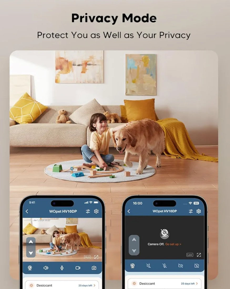 Updated Features & 24/7 Privacy Protection: The low food sensor alerts you when it’s time to refill, ensuring your pet always has access to fresh kibble. say goodbye to stale food! through the Wopet Life app, you can enable or disable the camera to fully control your privacy. simply navigate to the privacy settings in the app to turn the camera on or off as needed.